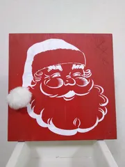 ミニサインボード クリスマスにはまだ早いですが、サンタさんをお迎えしました!シンプルに赤と白ステンシルシートは小さいパーツが多く台紙から剥がすのが大変でした。そう 必需品のメガネを忘れたのです!