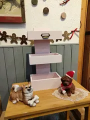 WS3段テーブルシェルフです初めてPINK塗料で🩷 ルルちゃんのラックどんなアレンジしようかな🩷🐶🎀 昨日のワークショップ…愛犬ルルちゃん用にと3段テーブルシェルフを新色塗料ソフトピンクで作りました🩷ピンクは8年近くWS参加していますが初めての色味🩷ルルちゃんのゲージ上にオヤツや小物入れて使います🩷