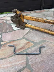 鉄筋で取っ手を作ってみました 知り合いからベンダーを借りられたので作ってみました😊なぜか同じサイズに作れなくて悪戦苦闘中🤣 鉄筋LOVE