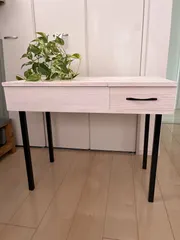 収納付き角脚テーブル ワークショップで収納付きのテーブルを作ってきました。アイアンの脚は家に帰ってから取り付けました。とてもしっかりとした造りで気に入っています。そしてたくさん収納できそうです。写真は、ピンクっぽくみえますが、色は超撥水のホワイトで塗りました!スタッフの方には丁寧に教えていただき😊ありがとうございました🥰