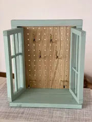 窓型ウォールラック ワークショップで制作した窓型ウォールラック 早速フックを取り付けて後は1番下のところにカゴを置いたら完成‼️ 窓の桟?(枠)は、あえて左右の高さを変えてみました😊 完成したら玄関に飾ろうかなぁ✋