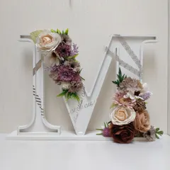 イニシャルのボード見つけたぁ〜🎶お花とマステで飾ってみました💕家にあった花と100均で買ってきたお花💐バランスが難しいなぁ🤔又挑戦してみたいです💕