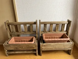 ベンチ型プランターの底を下げました! 先月、ベンチ型プランターを2個作りました🥰この中に、カインズで売ってるプランターを入れたかったのですが、合うプランターは、なく、ならば、ベンチ型の底の部分を下げようと思いました😱💦💦5センチ下げたら、ちょうどよかったです🥰👍5センチ下げても、違和感なしです🥰💕まず、解体するときは、両サイドにビスを1