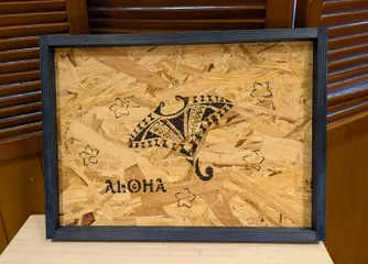 マンタのステンシルシートあるんですね! OSB合板を泳ぐマンタ、唯一無二の作品、かっこいいです😁