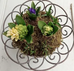 球根のアンテーク寄せ植え その後 2週間経ちました。やっとお花の色が分かる位になりました。