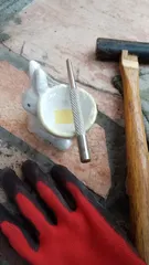 CAINZの穴あけポンチ✨確か200円ぐらいだったと思います😊 優しいコンコン🔨をひたすら続けると少しずつ穴が開きます😆👍 普段はリメイク缶の底穴開けで🔨ガンガン🔨打ち込んでいます🤭