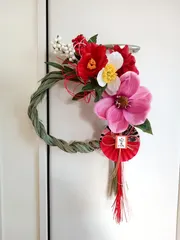 レモングラスのしめ縄!! レモングラスを使ってしめ縄を作り、デコレーションしてみました🫡 しめ縄作りも、水引きアレンジも楽しかったー!!来年はもっと作りたい😆 👇足が出てきてすみません🤣🙏職場用なので、造花ばかり使いましたがいい感じ🫰😁