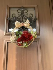 バラ🌹が好きで、今現在5種類のバラが咲いています。それに合わせてアメリカンフラワーでもバラ🌹を作成して玄関ドア🚪に飾りました。
