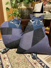 猫ちゃんクッション キルトの先生に教えて頂きました👍大変な所も有りましたが、何とか可愛い二つの猫ちゃんクッションが完成しました💕