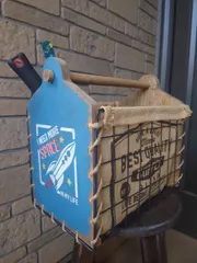 夏のDIY2022「ジグソーでカッティングボードバスケットアレンジ」 ワークショップで作ったジグソーでカッティングボードバスケットをアレンジしました♥ 100均の麻袋を開いてバスケットの縁に縫い留めて細かいものでも入るようにしました とても気に入った作品でしたので2点色違い&ステンシルも変えて作っています 赤い方に