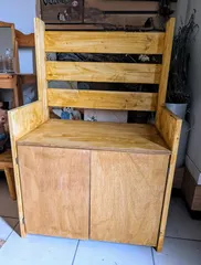 ベランダ収納庫 部屋に入れました🤭🌼完成🌼扉だけ別物みたいなツートン仕上げになりました🤭ここまで仕上げてお昼休憩です☕️🍦木材🪵の材質が違うから?色の入りが全然違う🙄塗装前🪵本日の木材🪵🌸取っ手変えてみました🌸 ベランダ収納庫を作りました🪵10時〜15時(お昼休憩1時間あり) ひさびさに大物でし