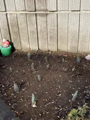 🌷球根植付 1ヶ月😊 https://diy-square.cainz.com/announcements/al3yn6uakphdfadv 前の投稿時、23個植えた中、8個の🌱から、16個と倍の🌱になりました😊ちょっとだけ芽を出してくれるだけで、嬉しくなっちゃいますね💕この勢いで、かわいいお花🌷咲いてくれると