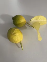家のレモン いつ収穫⁇二個ですがして良いか分からないのですが羽のついた虫がついていたので収穫しちゃいました🤩貴重なレモン🍋無駄なく何に使うか迷います。