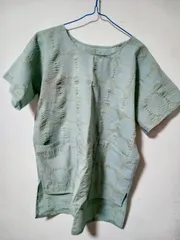 夏のブラウス 手縫いで夏のブラウス作るレシピを見たので何か作りたくなり、端切れで買った甚兵衛用生地で夏のブラウスに。布を節約しすぎて身幅が狭すぎたので袖を広げてみましたがちょっとスリムに作りすぎましたね…ポケットつけたり丈を伸ばしたりしたので原型は微塵も残ってません!ものぐさして襟ぐりの始末も省きました。ホントは