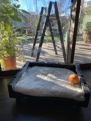 ペツト様ハンモック(カインズで購入)手前に写り込んでいるのは、3段足場?だったかなぁ。寝ていた処を撮ろうと、起きてしまいましたね。ついでにピーターも一緒に。 女の子ですが凛々しく。