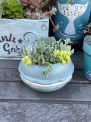 100均で買い物中見つけたプラ製マカロン小物入れ?上半分のマカロンをグリグリっと上げるとパカッと開いて小物入れになる感じ?まぁ本来の使用方法は、さておき😅 これは、鉢向き~なので即購入🪴上の部分は、熱したキリで丸く穴を空け、底もキリで底穴をプスプス。追加写真: