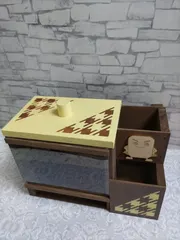 トラッシュカバー 今回は白に塗りました。ステンシルはアイアンブルー🤩キャスターも付いてるので使い心地は良いです🤩