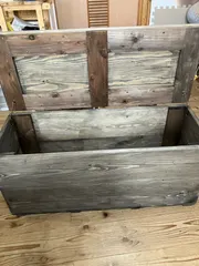 大きなベンチ収納 ワークショップで、作りました。中々、大きく移動が大変なので、キャスターをつけようと思います。ベンチにしても、丈夫そうです。