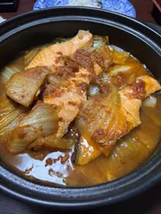 タジン鍋 鮭 仙台から帰って来て娘には牛タン弁当を買って来たので😉簡単に冷凍庫の鮭の切り身を使っいました。タジン鍋に白菜を敷いた上に鮭をのせて少しだけお酒を振りかけ、煮込みハンバーグで残った野菜とスープをかけてみました。白滝のペペロンチーノ風チャチャと簡単にビーフンではありませんよ😅白滝です