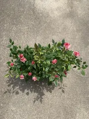 今、一番お気に入りの薔薇🌹です。赤に白が混ざっていて、昨年購入してカルミアの下に鉢事置いてあり、花が咲いて玄関先に出しました。強いですね。掘って置いてちゃんと咲いてくれるなんて・・・