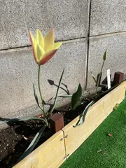 チューリップ2号(原種系クルシアナシンシア) 家庭菜園の隅っこに昨年植えたのが咲きました。此処はもう一個咲きそう🌷