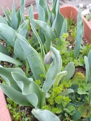 放置チューリップ、つぼみが3つ出てきました!何色かな?