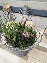 球根を使ったアンティーク寄せ植え 球根を使ったアンティーク寄せ植えⅡ ヒヤシンス 桃花1ポット 紫花2ポットムスカリ しろ1ポットクロッカス きいろ1ポット 今回もぎゅうぎゅうです😍 ご一緒してくださった皆さま先生ありがとうございました❣️
