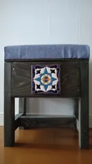 収納付きスツールとスペイン🇪🇸タイル 待ちに待った☺スツールのワークショップ。先日作成したスペイン🇪🇸タイルの使い道がなかなか見つからず、スツールに付けてみました