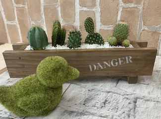 横長プランターとサボテンの寄せ植え 横長プランターは、思ってたより小さめですが…ステンシルやサボテン🌵の寄せ植えもありとても中身の詰まった、お得な作品でした(^^)多肉経験はあっても、サボテンは初めての私…植え方もひと工夫あって、これからの趣味の一つになりそうです(笑) ✨皆さんの作品も素晴らしい✨