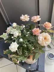 ミニバラの寄せ植え🌹 参加時には全て蕾だったので、咲いたら投稿しようと思い、ずっと待っていました🌸暖かくなっても、花かんざしがなかなか咲かず…今日咲きましたー☺️嬉しい🥰