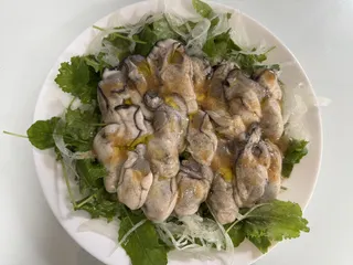 ■材料☆生食用の牡蠣🦪☆生野菜(家にあったベビーケール、ルッコラ、玉ねぎを使いました)☆オリーブオイル☆塩胡椒☆お好みでドレッシング(すりおろし玉ねぎドレッシングを使いました)☆塩(牡蠣の汚れ取り用)大さじ1くらい ■作り方☆ザルとボールを重ねて牡蠣と塩を入れ優しく揉み洗いします。☆水をた