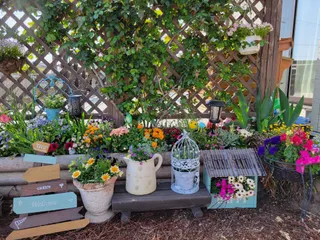 玄関前を前製作した物で飾りました🎵 色々咲いてきました🎵