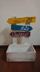 ガーデンサインプランター 昨年、ワークショップの途中でお持ち帰りして、家で塗装とステンシルはしておいたのに…💦今日、やっと組み立てて完成しました😅明日は天気悪くなりそうですが、花を買って来ようかな~🤣