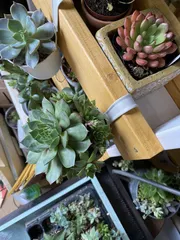 こちらも先日お迎え🫧🫧🫧 ゴールデンウィークにお迎えした多肉ちゃん🫧🫧🫧 こちらの多肉ちゃんはラダープランターに住んでます👍✨ ラダープランターがまた回ってきたらもう1個か2個作りたいくらい💕場所を取らないのに👍✨収納力が抜群👍✨9鉢から12鉢置けて😍 冬場までに回って来ないかな〜😊