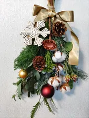 市民活動センターにて🎄 クリスマススワッグ作り教室が開催され、30名の参加に応募して今日作ってきました。なかなかセンスがなくて上手には出来ませんでしたが、それでも和気あいあいでとっても楽しかったです✨。英字新聞を下に敷いて作ったのですが、捨てずに持ち帰ってきました(笑)。講師の方がクリスマスが終わったらゴールドのリボンと取