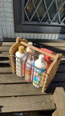 カッティングボードバスケット 撥水の塗料を使用し、液肥や消毒スプレー入れに😊 作業はジグソーも丸棒を通す穴あけも初めての作業で慎重過ぎました😂でも初めての作業は新鮮で楽しかった♥️ワンツーマンだったのでとってもラッキーでした😆