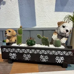 横長プランターとサボテンの寄せ植え