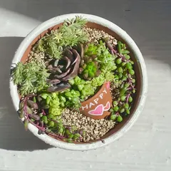 昨日作って来ました。もう2月も後半ですが、マイストアで2025初WSでした。😆(別ストアでGWSは先月行きました) サボテン5個も植えられるかなぁと思ったけど…入りました🙌かわいい〜❣️😍ご一緒した方と❣️(5人参加でしたが)家で眺めてニマニマしてます😍ステンシルは滲んじゃってうまくできず