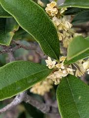 銀木犀 金木犀とは違う、静かな佇まい🩷 香りもほのかです 金木犀のオレンジに比べて、優しいクリーム色のお花です😊