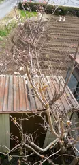 2階から見たソメイヨシノ うちの桜も咲いてきました。裏庭に有る方が先に咲いていますね。😺東側だからかなぁ。玄関の方はまだ、咲いていません。