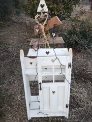 リーススタンドアレンジアレンジ 端材のリースと3段ラックとミニドアをくっつけて