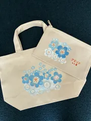 アデリアトート&ポーチ4 ■作品内容 アデリアトート&ポーチ■こだわりポイント 2回目だったので、青系の色の種類を多くしました。 花芯の所は、今回は2色にしました。 残念な所は、“ロ”の中の箱が強く色を塗ってしまいまったので、無くなりました🤣