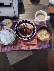 今朝の朝食 今朝は昨日の残りのナスのはさみ焼きこれから食べてトルコランプのワークショップ行って来ます