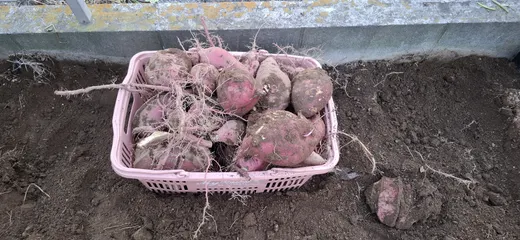 ようやくサツマイモを収穫しました🍠 どれも大きく育ってました🤣焼き芋にしたかったんだけど、大きすぎるからうまく焼けないかも🥹 とりあえず、つるボケになってなくてよかった😊 1つだけ、傷んでトロトロになっちゃってたので、そのまま放置して畑の肥やしになってもらう予定です😁