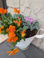 以前カインズで購入した、ビオラ、パンジー、キンギョソウ、カラーリーフ(プリペットシルバー)で寄せ植えをしました。ビオラとパンジーは寒さに強く春まで咲いてくれるので、寂しくなった鉢植えも華やかになりました✨