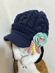 帽子のお飾り 帽子のお飾りを編みました🥰 皆さんの編み物🧶の投稿みて 急に編み物したくなりました^_^ 今日も夏日だったし ニット帽被るのはまだ先だと思いますが😅 紺色の帽子、去年はそのまま被ってましたが 飾りをつけて今年はまた違う雰囲気で被って みようと思い