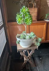 折りたためるテーブル パールさんの作品を見てWSに参加して初めて作った作品です。黒法師の植木を飾っています。🌸