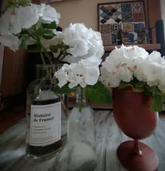 あじさいと入れ物 地植えのあじさい。下の方で埋もれてしまっていた枝をカットして救出。色付きの入れ物は100均のプラカップを色塗りしたもの。
