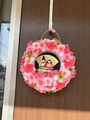 お雛様リース 初めて投稿させていただきます。不慣れですが、宜しくお願い致します。もうすでに…写真がピンボケです。ダイソーとセリアさんの商品で作りました☆