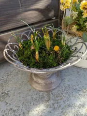 先日鶴ヶ島で購入したアンティークな器で球根の寄植えしました😁これから咲くのが楽しみです😍